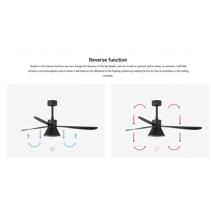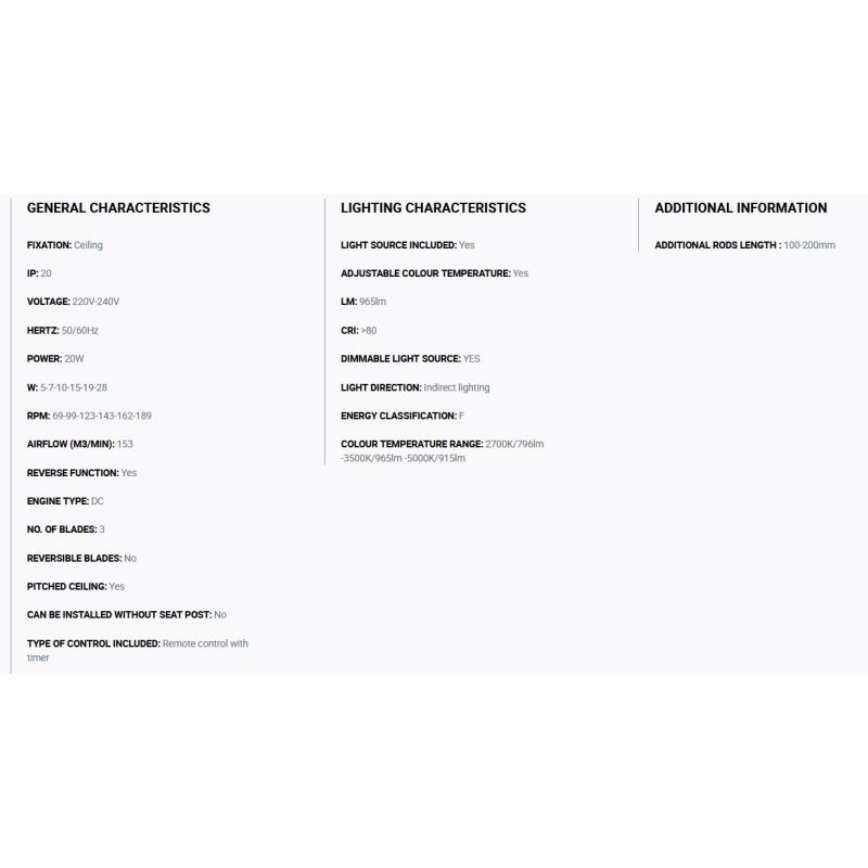 | Informatii produs: | ventilator cu telecomanda, cu functie reversibila iarna-vara, 6 trepte de viteza reglabile 5-7-10-15-19-28Watt si 67-99-123-143-162-189rpm, activat prin telecomandă inclusă |