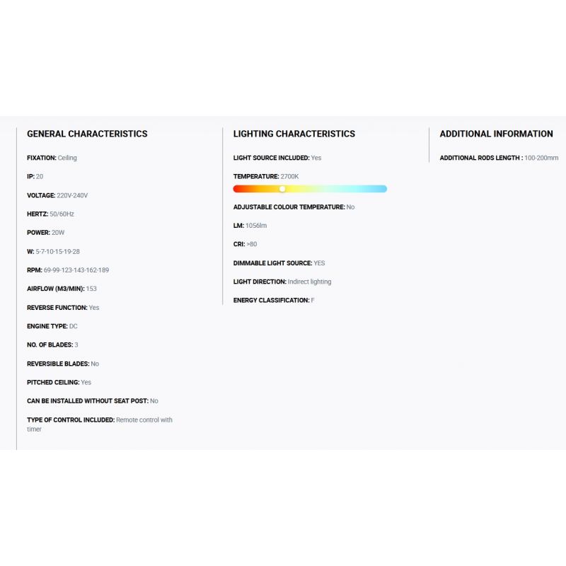 | Informatii produs: | Ventilator cu telecomanda, cu functie reversibila iarna-vara, 6 trepte de viteza reglabile 5-7-10-15-19-28Watt si 67-99-123-143-162-189rpm, activat prin telecomandă inclusă |
