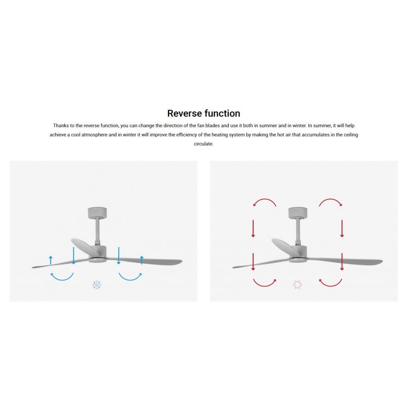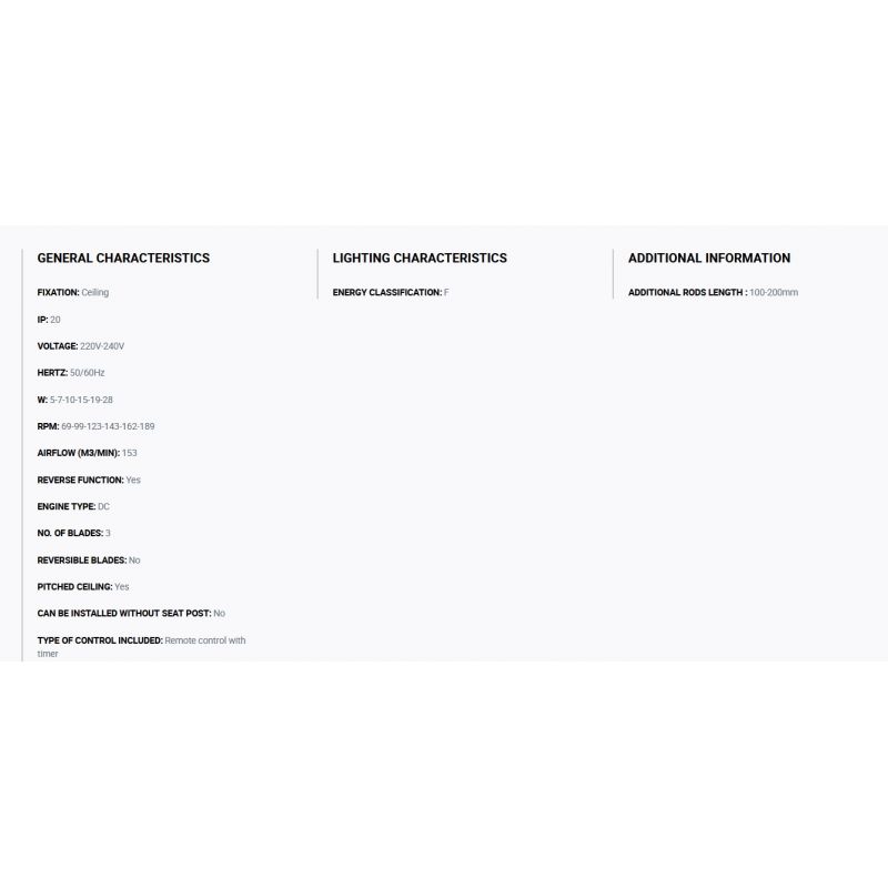 | Informatii produs: | ventilator cu telecomanda, cu functie reversibila iarna-vara, 6 trepte de viteza reglabile 5-7-10-15-19-28Watt si 67-99-123-143-162-189rpm, activat prin telecomandă inclusă |