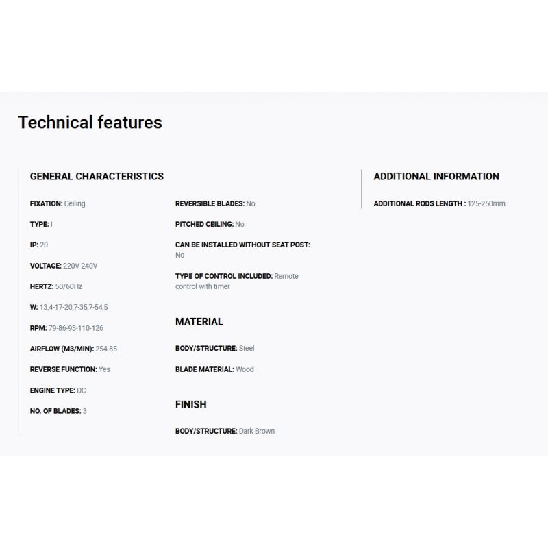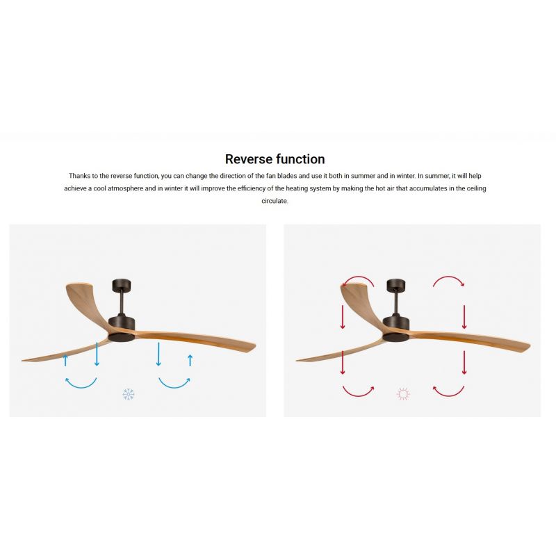 | Informatii produs: | Ventilator cu telecomanda, cu functie reversibila iarna-vara, 3 trepte de viteza reglabile 13.4-17-20.7-35.7-54.5Watt si 79-86-93-110-126rpm, activat prin telecomandă inclusă |