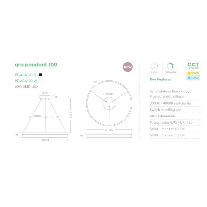 | Informatii produs: | Alegeti-va temperatura de culoare la fața locului, deoarece un comutator din tavan ofera urmatoarele opțiuni: 3000k-5600Lm sau 4000k -5600Lm. |