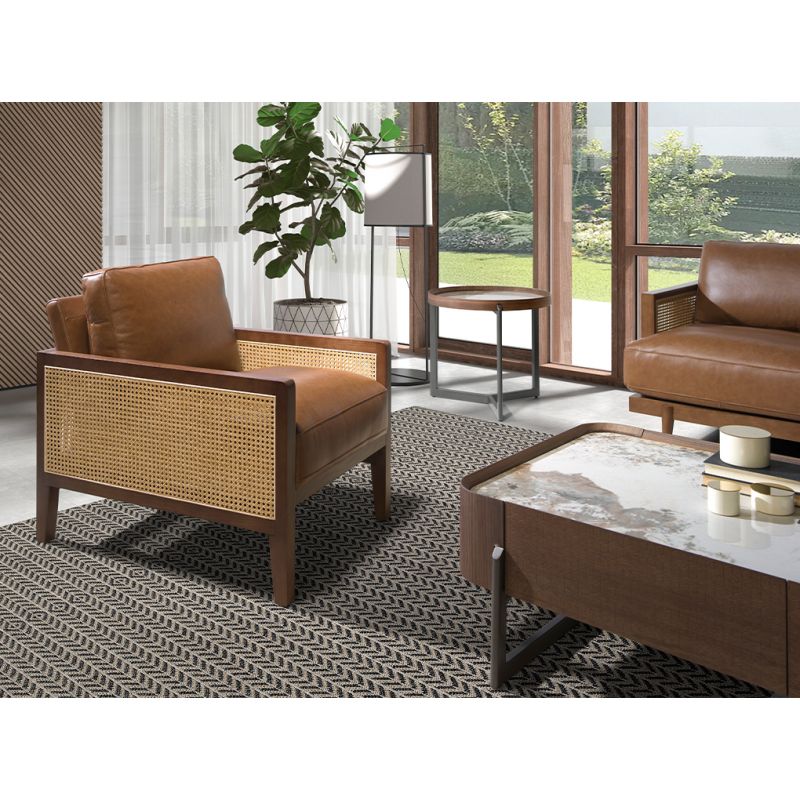 Mobilierul este realizat utilizând lemn furniruit de nuc (walnut veneer), material utilizat frecvent în designul interior datorită aspectului natural al lemnului. Furnirul de nuc este utilizat pentru realizarea meselor de dining, consolelor, mobilierului TV, birourilor și paturilor, fiind integrat în structuri cu design modern.