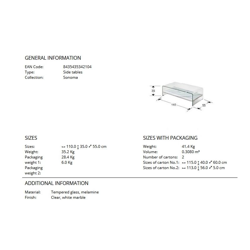 | Descriere | masuta de cafea din sticla transparenta calita si curbata de 12 mm, raft MDF, finisaj cu aspect marmură albă |
