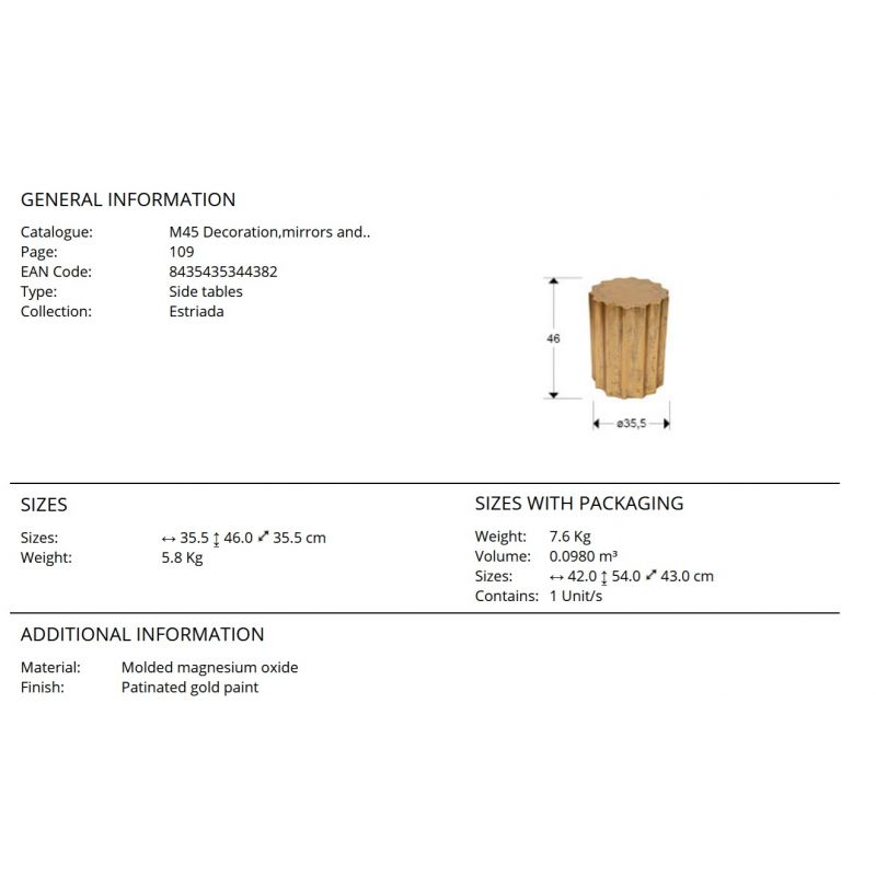 | Materiale | măsuță laterală realizată din OMG (magneziu turnat), textură de ciment, finisaj auriu patinat |