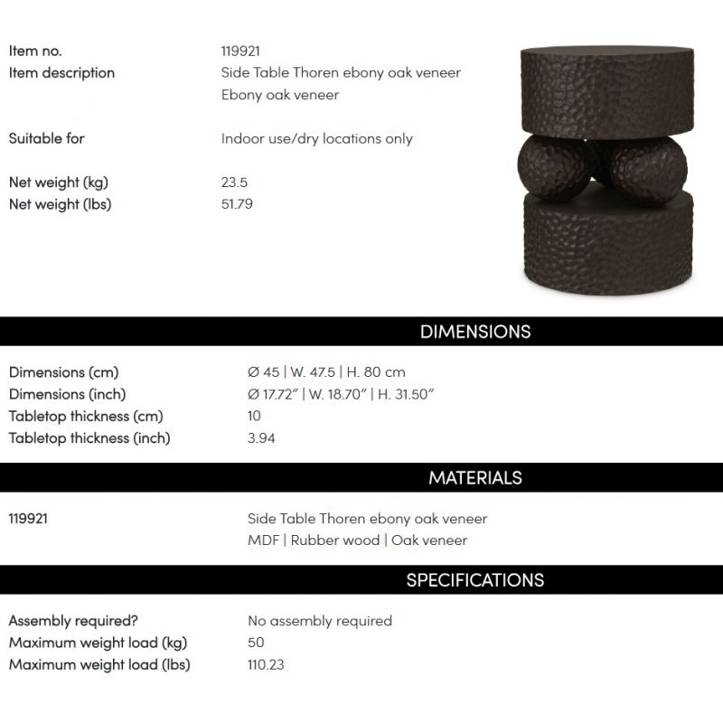 Masuta auxiliara design LUX Thoren, Ebony oak veneer