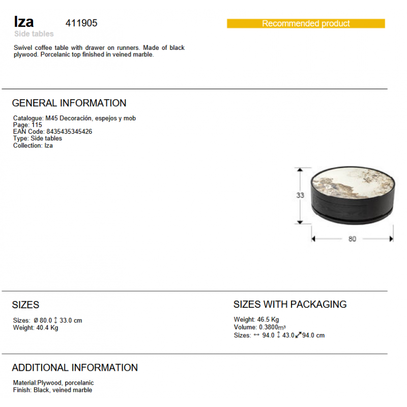 | Materiale | placaj finisaj negru, portelan cu aspect de marmura |