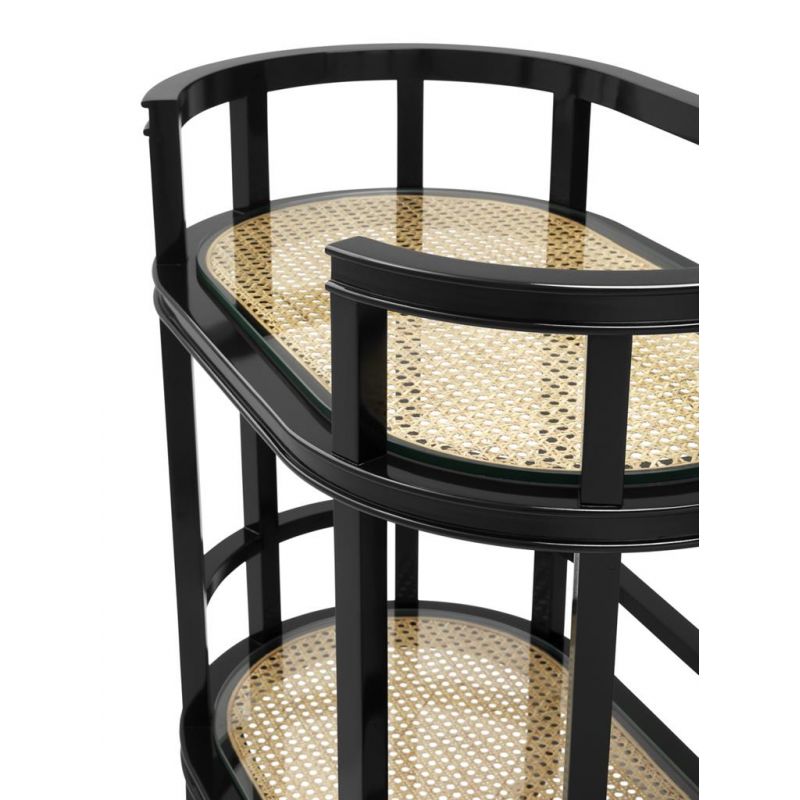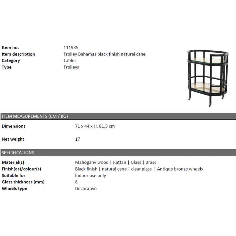 | Materiale | structura din lemn de mahon, rattan cane, sticla-8mm, roti din bronz antic, alama |