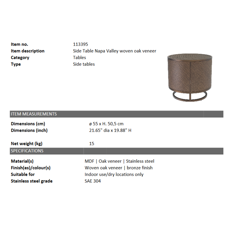 | Descriere | structura din otel inoxidabil finisaj bronz, furnir de stejar, MDF |
