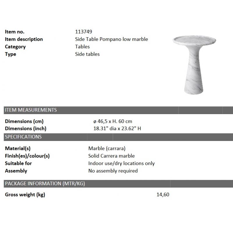 Masuta auxiliara design LUX din marmura Pompano low