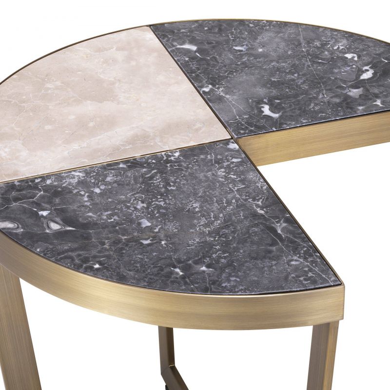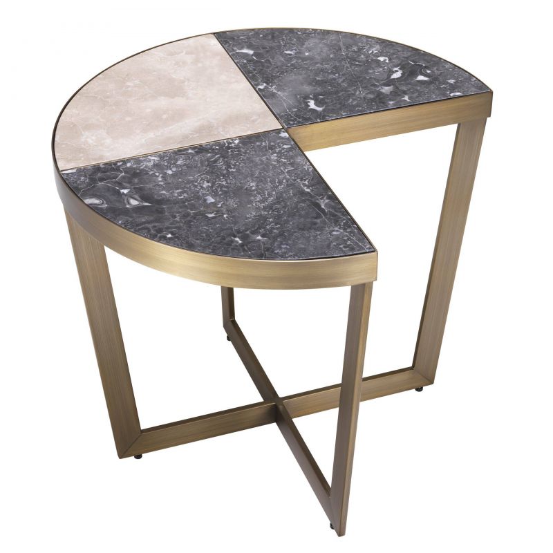 Masuta laterala design LUX Turino este realizata din marmura si sustinuta de picioare din metal in finisaj alama. Masa Turino este un inlocuitor excelent pentru decoratiuni de bun gust, oferind un design deosebit si elegant in camera de zi sau dormitor.