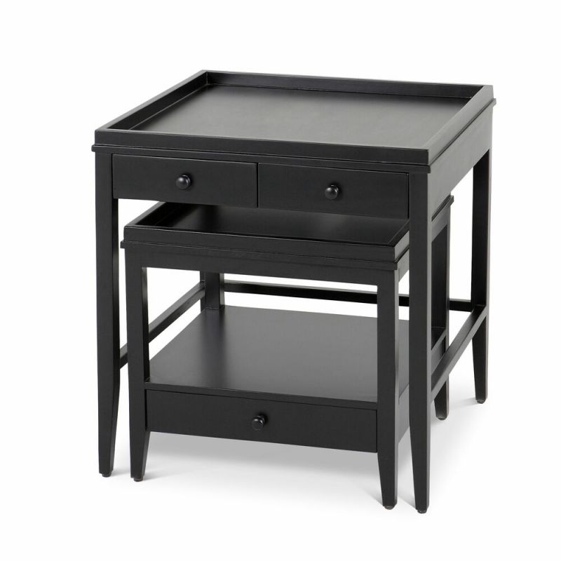 Set de 2 masute laterale design LUX Bleeker, completați-vă stilul interiorului din salon sau dormitor cu setul de 2 mese laterale Bleeker. Masa mai mică, cu un sertar de depozitare, se potrivește sub masa mai mare, care are două sertare de depozitare. Arată grozav în combinație cu masa laterală Broomer.