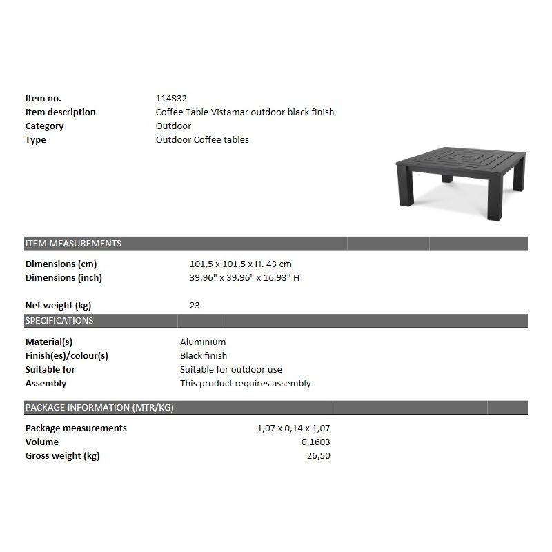 Masuta de cafea pentru interior/ exterior design LUX din aluminiu Vistamar negru