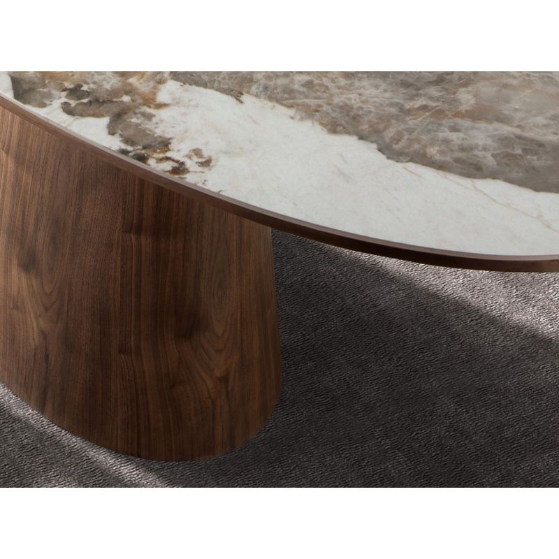 Mobilierul este realizat utilizând lemn furniruit de nuc (walnut veneer), material utilizat frecvent în designul interior datorită aspectului natural al lemnului. Furnirul de nuc este utilizat pentru realizarea meselor de dining, consolelor, mobilierului TV, birourilor și paturilor, fiind integrat în structuri cu design modern.