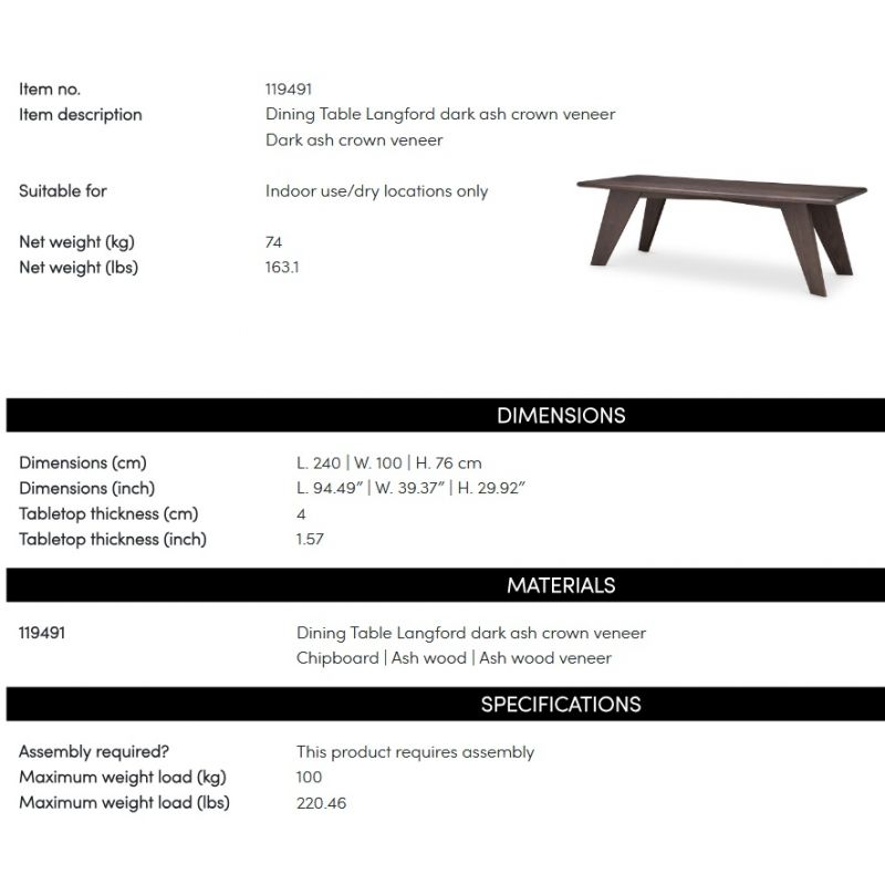 Masa dining design LUX Langford 240x100cm