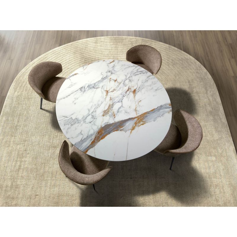 | Materiale | baza din otel finisaj bronz, blat din marmura de portelan alb lucios cu vene gri si oxid |