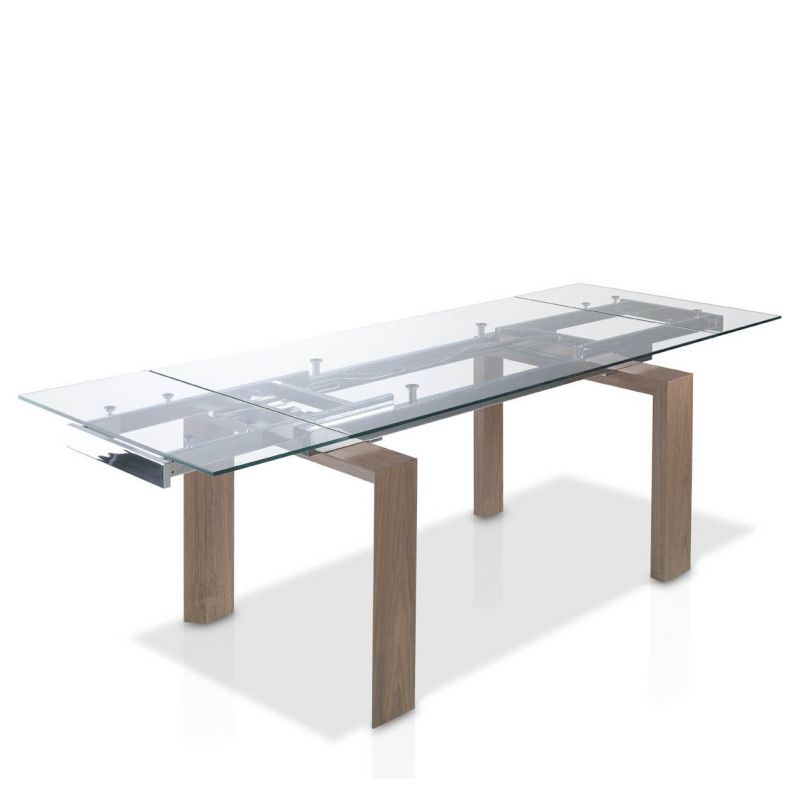 Masa extensibila Walnut este o masa impunatoare unde se intalnesc materiale intr-un design inovator. Masa Walnut cu blat din sticla transparenta si baza din lemn furniruit, este simbolul elegantei moderne.