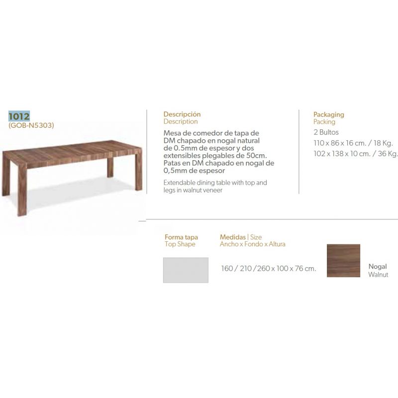 Masa este realizată din lemn si furnir de nuc, având doua inserții cu sistem de pliere fluture, care pot fi extrase cu usurita si extinde masa la 210cm sau 260cm, astfel o cina in familie devine o bucurie.
