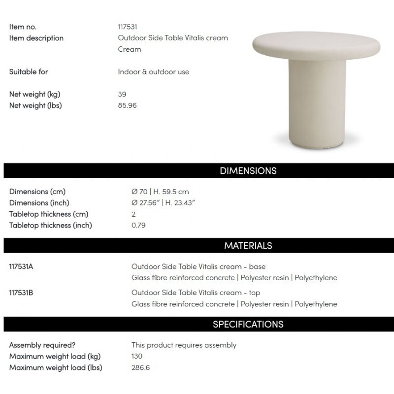 Masuta auxiliara design LUX pentru interior si exterior Vitalis crem