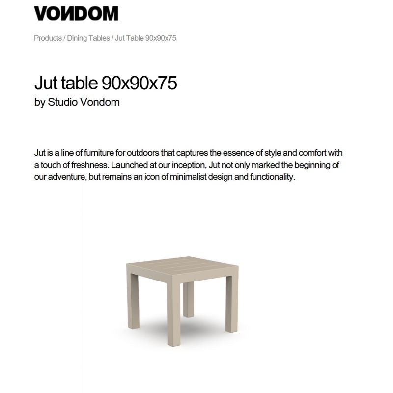 Masa moderna pentru exterior si interior cu design de lux premium. Simpla, cu un design minimalist, realizat dintr-un material modern, durabil si rezistent la intemperii si raze ultraviolete, masa Jut este recomandata pentru a fi utilizata atat in spatii interioare, cat si in spatii exterioare. Aceste concepte sunt ideale în hoteluri sau în reședințe private vine sa ofere o solutie non-conformista amenajarilor barurilor din spatiile exterioare moderne, fiind un obiect de mobilier care completeza o terasa lounge.