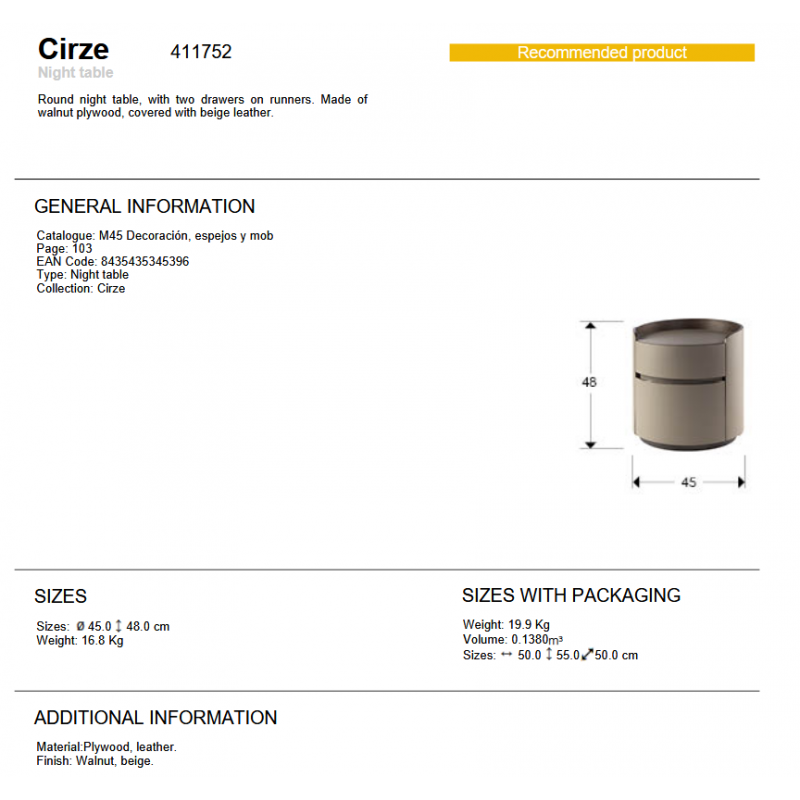 | Materiale | placaj finisaj nuc acoperit cu piele bej |