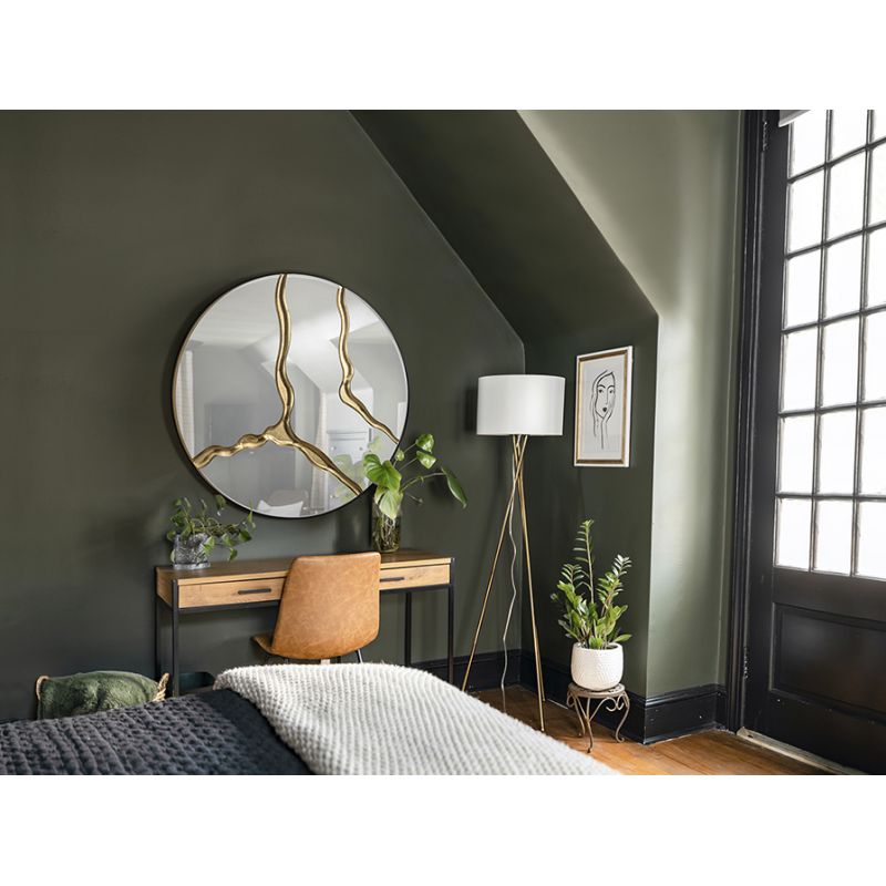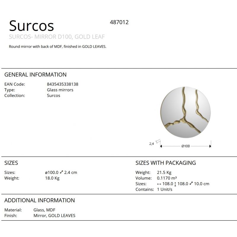 | Descriere | oglinda rotunda finisaj foita aurie, spate din MDF negru |