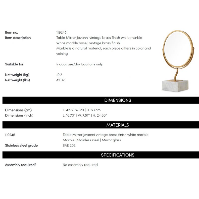 | Materiale | baza din marmura alba, otel inoxidabil, oglinda pe ambele fete |