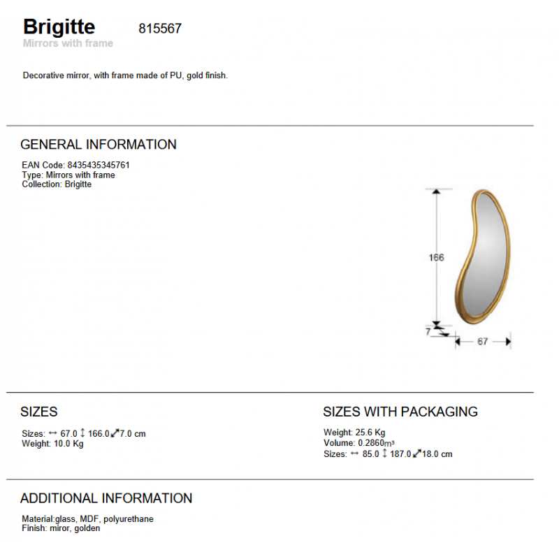 | Materiale | oglinda cu rama din PU, finisaj auriu |