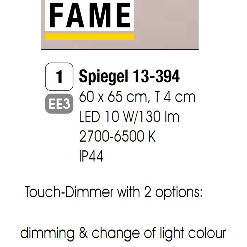 | Informatii produs: | oglinda LED pentru baie cu protectie la umiditate IP44, buton tactil cu doua functii: regleaza intensitatea luminii si temperatura de culoare |