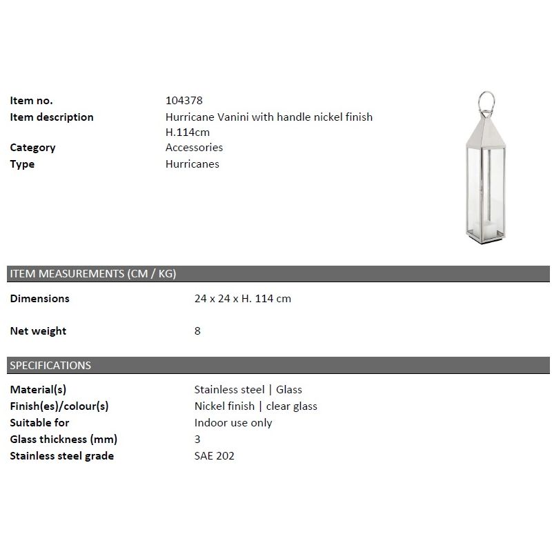 | Culoare | nickel, transparent |