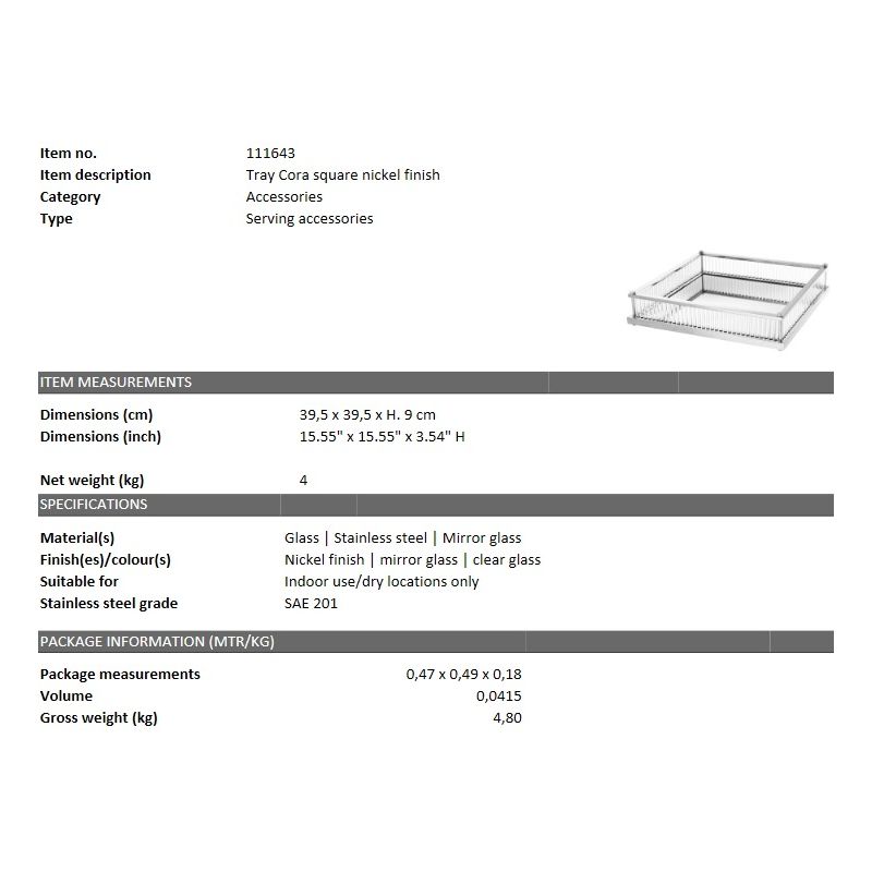 Tava design LUX Cora Square, nickel