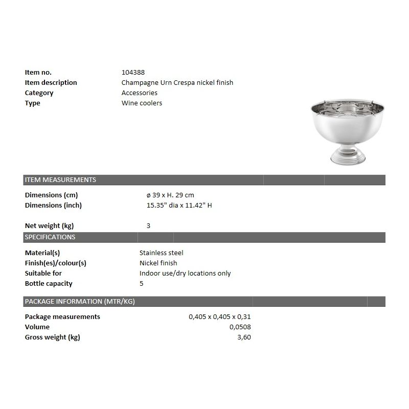 Frapiera design LUX Crespa, aduceți măreția în decorul casei dvs. cu frapiera Crespa realizata din otel inoxidabil finisaj nickel.
