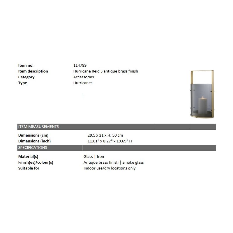 Suport lumanare design LUX Reid S, realizata din fier finisaj alama antic si sticla fumurie este un punct focal principal in orice interior cu un design clasic-modern.