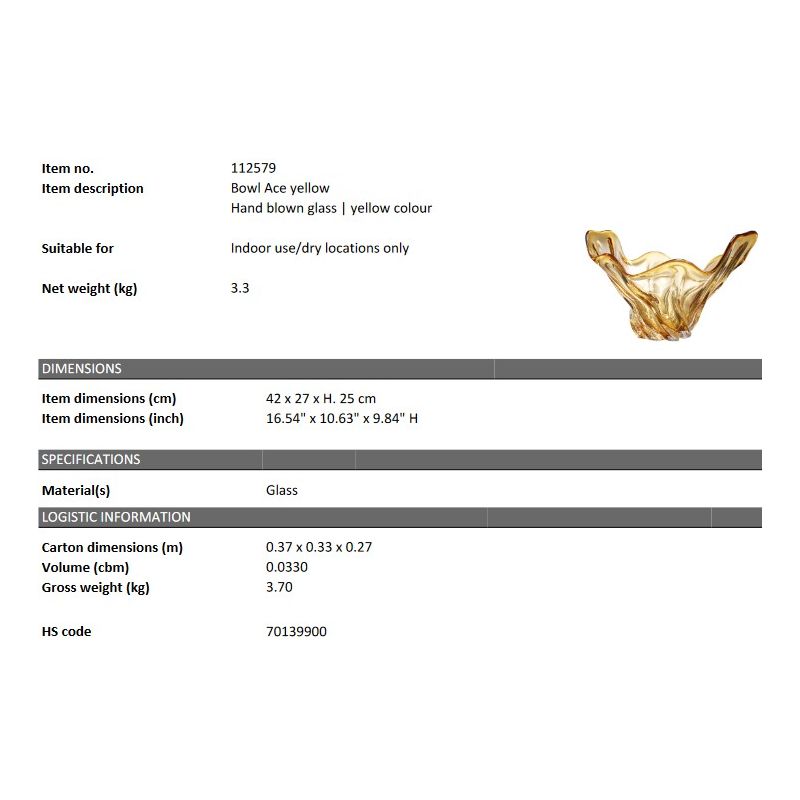 Bol/ Obiect decorativ LUX Ace, aduceți măreția în decorul casei dvs. cu bolul Ace realizat din sticla suflata manual.