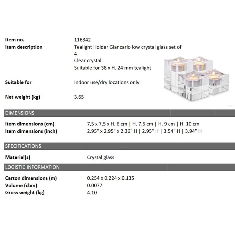 Set de 4 suporturi pentru lumanari Giancarlo low