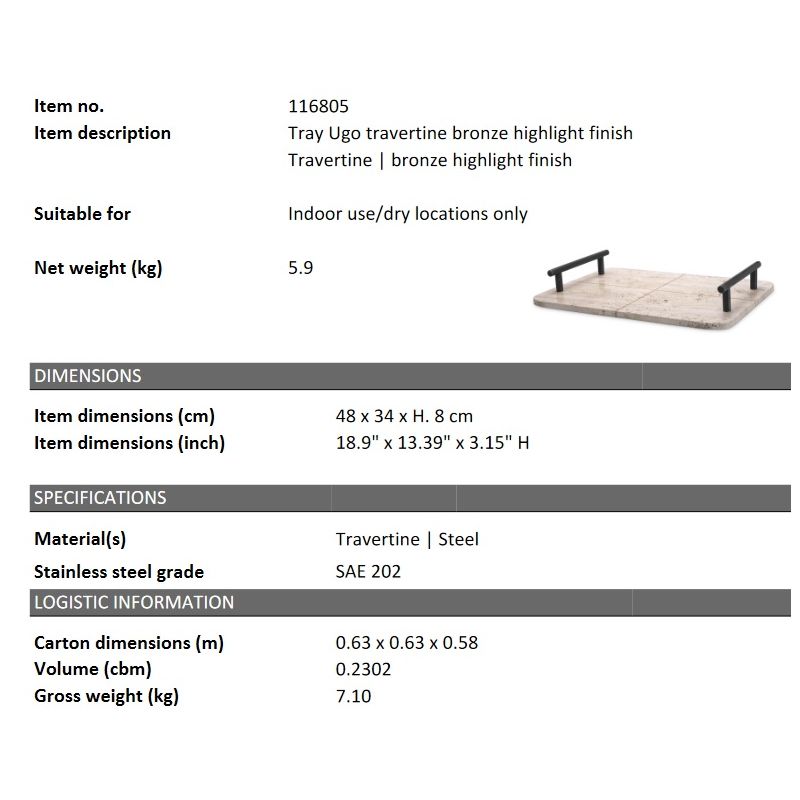 Tava, obiect decorativ design LUX Ugo travertin
