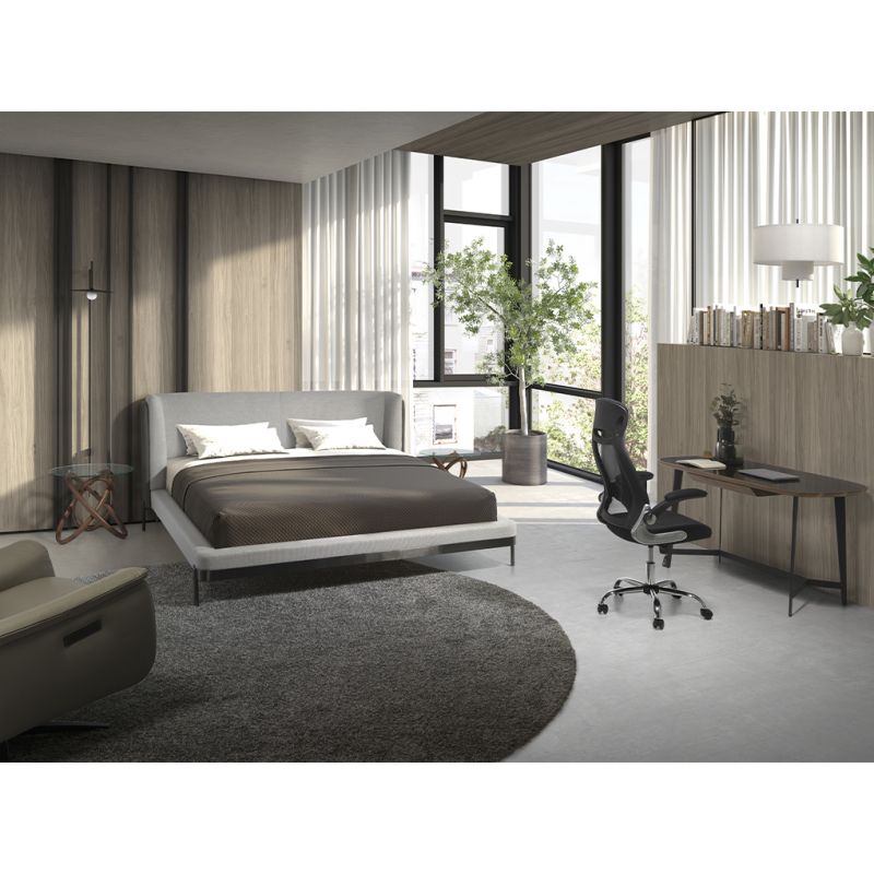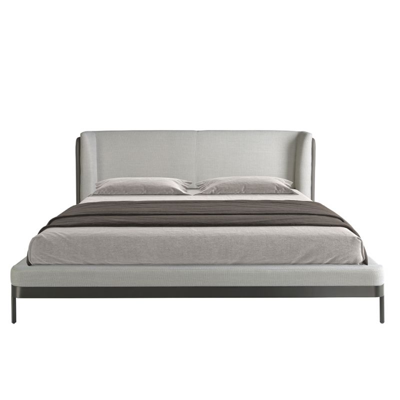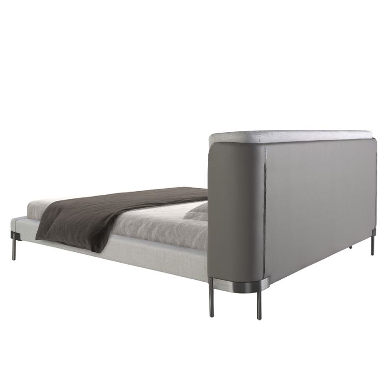 Materiale | tapiterie din tesatura, tablie tapitata cu piele sintetica, otel inoxidabil nuanta inchisa, somiera din sipci inclusa in pret |