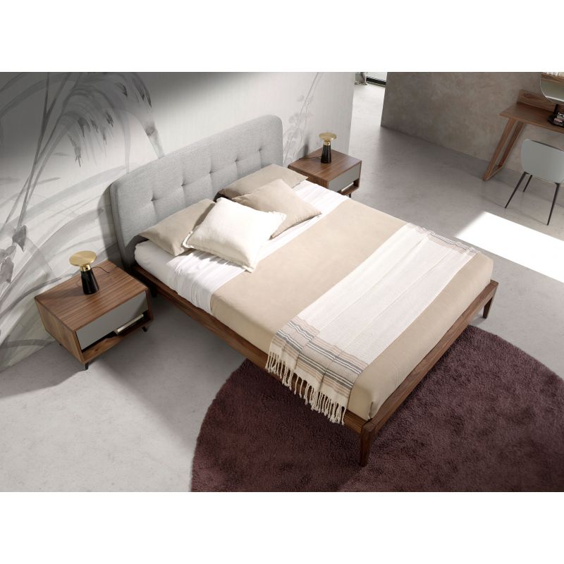 Descriere | MDF furniruit cu furnir din lemn de nuc de 0,5mm grosime, tablie tapitata cu tesatura, umplutura tablie spuma poliuretanica, somiera inclusa in pret |