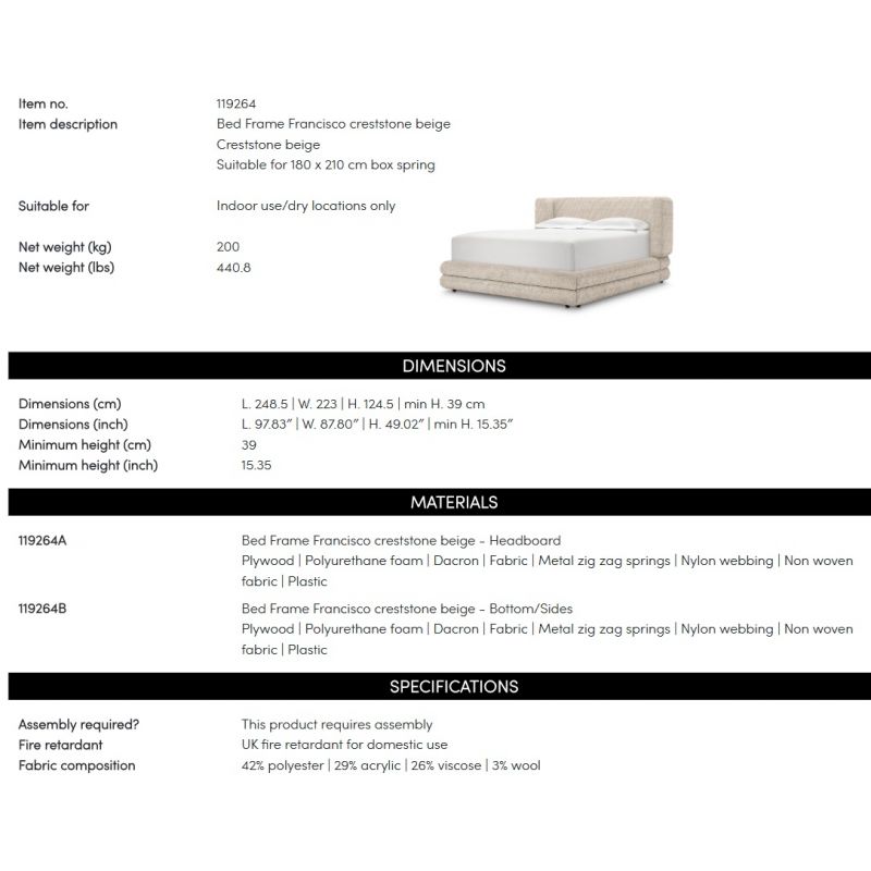 Materiale | placaj, spuma poliuretanica, tapiterie tesatura Creststone bej |