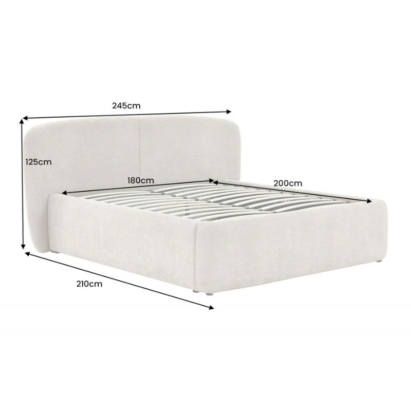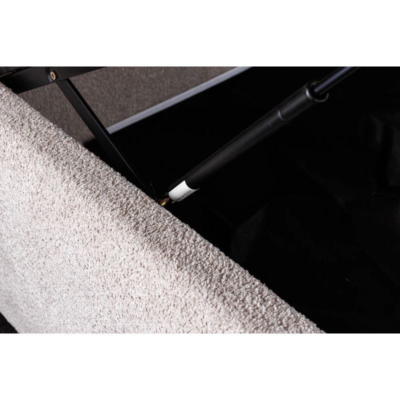 Materiale | picioare din plastic, tesatura boucle, spatiu de depozitare cu mecanism de ridicare pe gaz, somiera căptusita cu material textil |