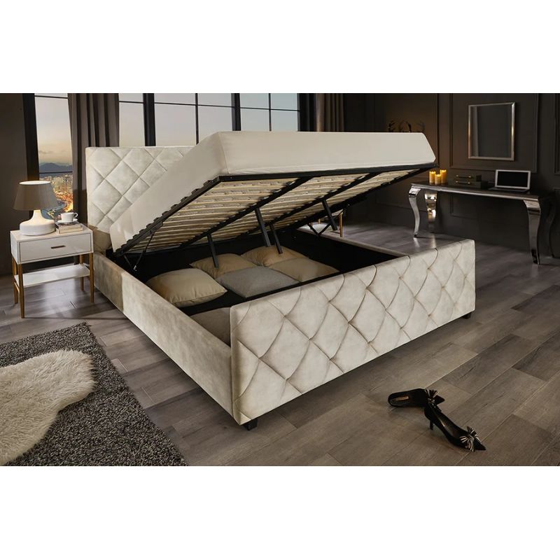 Materiale | cadru lemn de pin, catifea, spatiu de depozitare cu mecanism de ridicare pe gaz |