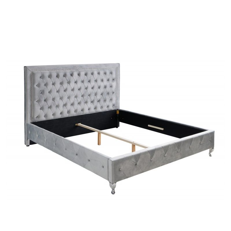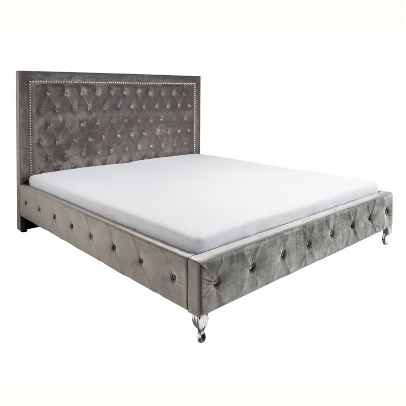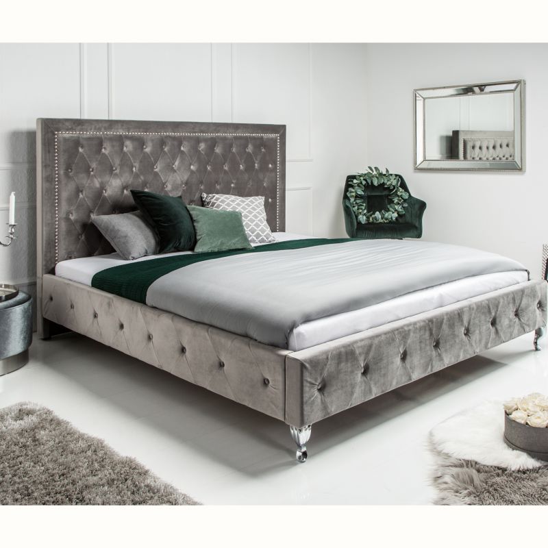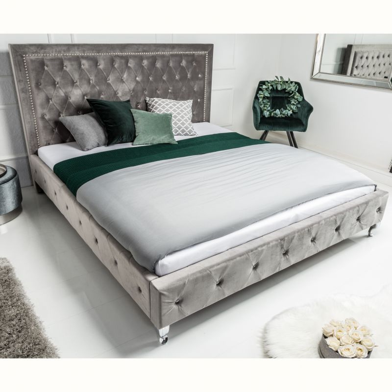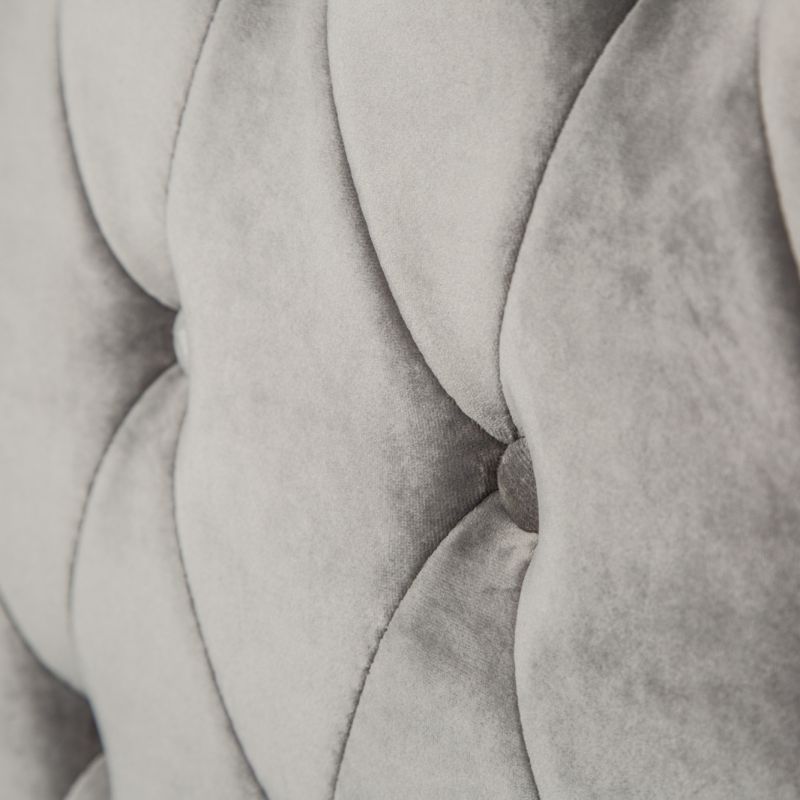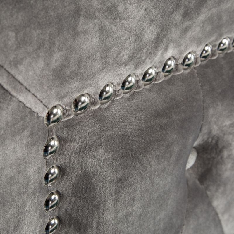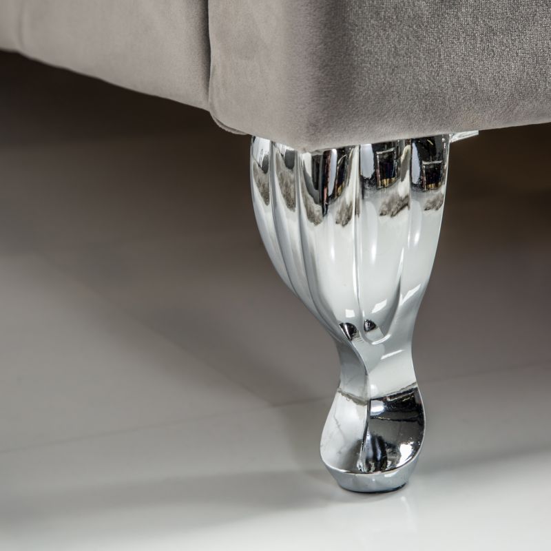 Descriere | MDF, picioare metalice cromate, tapiterie din catifea gri argintiu |