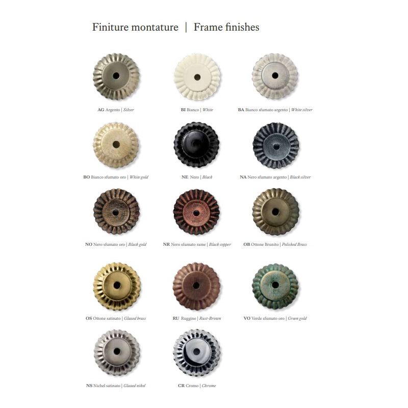 | Informatii produs: | Lustra realizata manual personalizabila (vezi poze secundare). Va rugam specificati finisajul in observatiile comenzii sau separat in mailul de confirmare pe care il veti primi de la unul dintre consultantii nostri. |