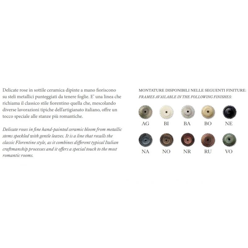 | Materiale | trandafiri si abajur din ceramica pictata manual, tulpini si frunze din metal disponibil in diferite finisaje |