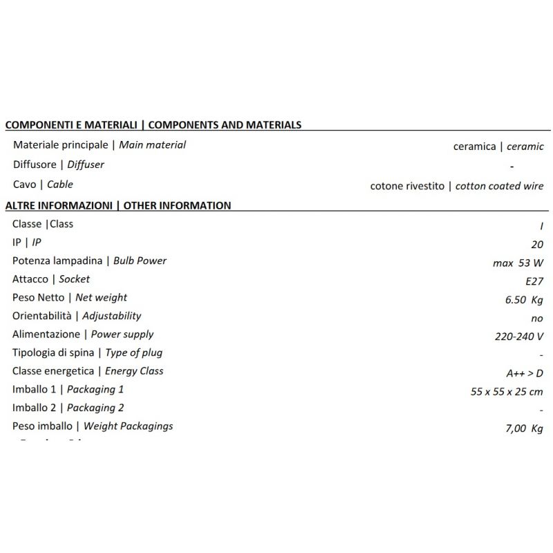 | Materiale | ceramica, cablu textil |