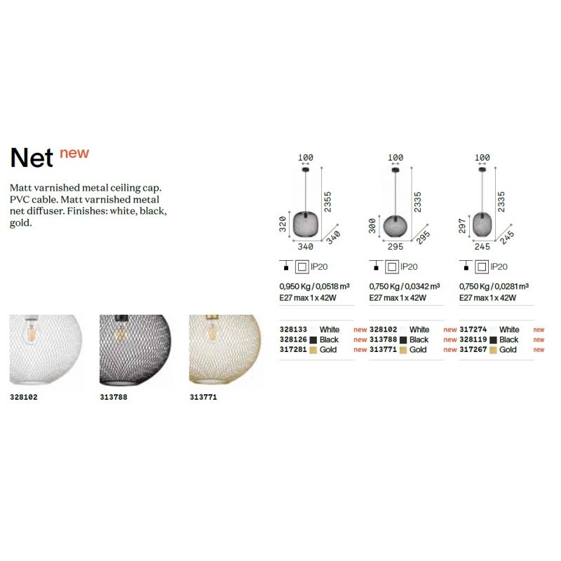 | Materiale | metal auriu, cablu PVC, abajur plasa metalica aurie |