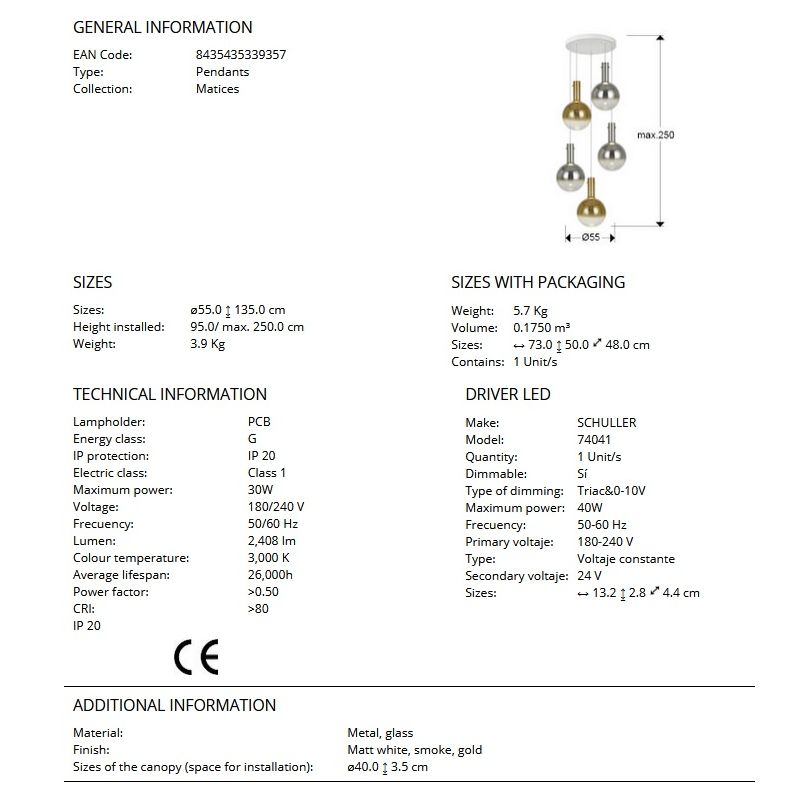 | Dimensiuni | diametru:55cm; inaltime suspensie:max.250cm |