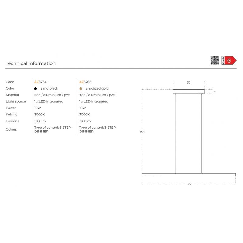 | Putere | 16 Watt LED integrat, 1280Lm, 3000K, 3-step dimmer |