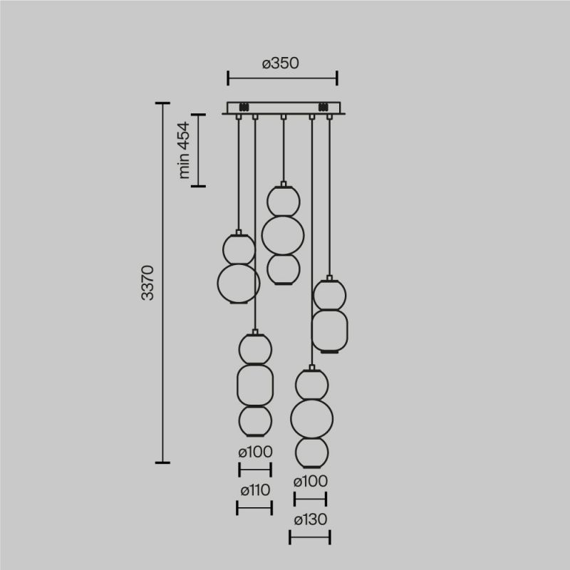 | Dimensiuni | diametru baza:35cm; diametru pendule:10/11/13cm; inaltime suspensie:min.45,4cm-max.337cm; |