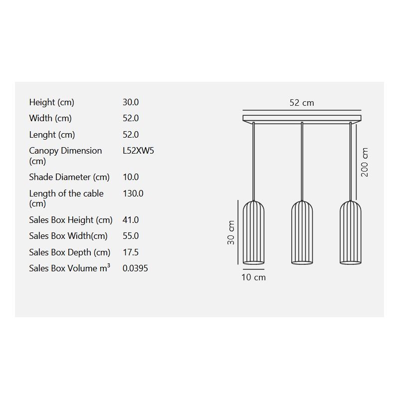 Dimensiuni | lungime baza:52cm; diametru pendul:10cm; inaltime corp:30cm; inaltime suspensie:200cm |