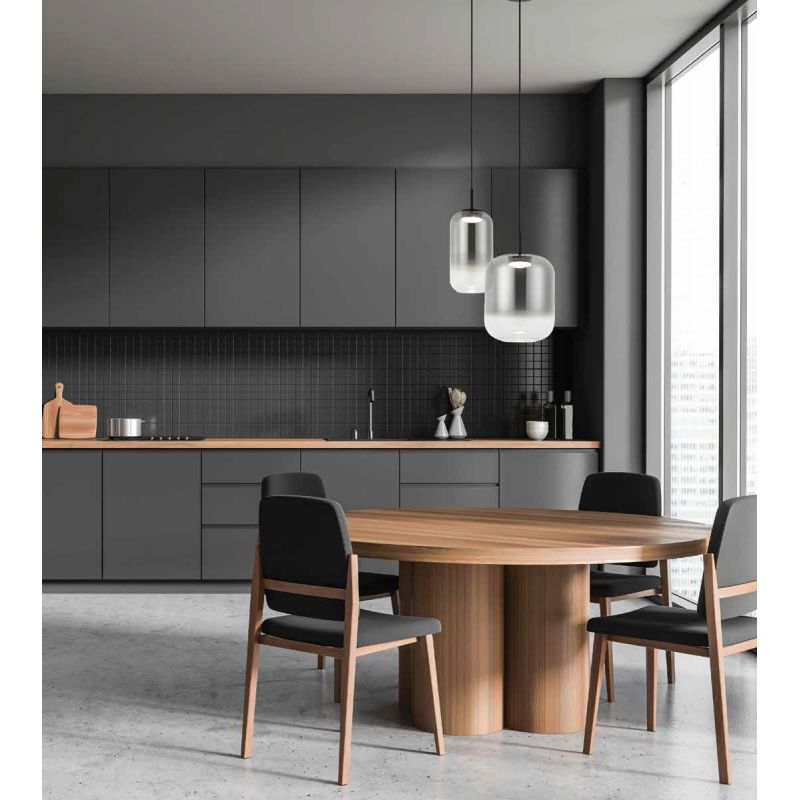 | Materiale | metal finisaj negru mat, abajur sticla decorativa nuanta fumurie |